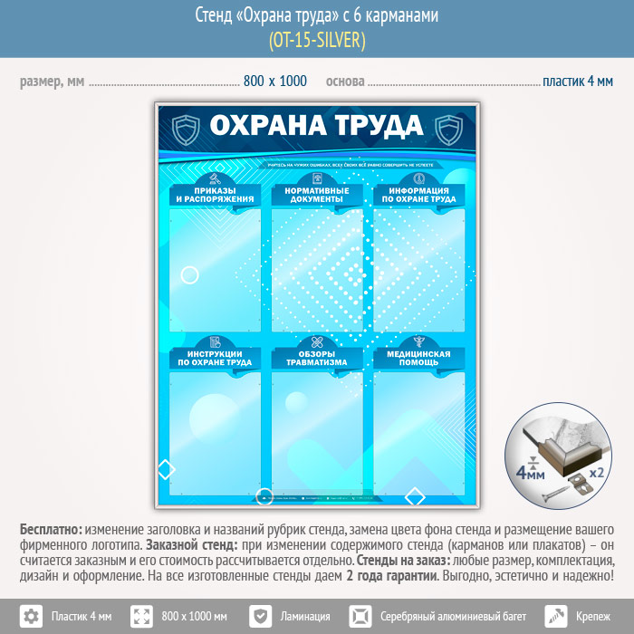 Стенд «Охрана труда» с 6 карманами (OT-15-SILVER) в Магнитогорске купить