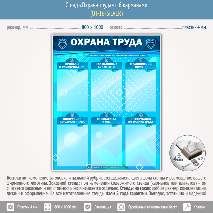 Стенд «Охрана труда» с 6 карманами (OT-16-SILVER) в Магнитогорске купить