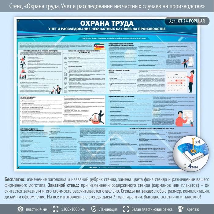 Стенд «Охрана труда. Учет и расследование несчастных случаев на производстве» (OT-24-POPULAR) в Магнитогорске купить
