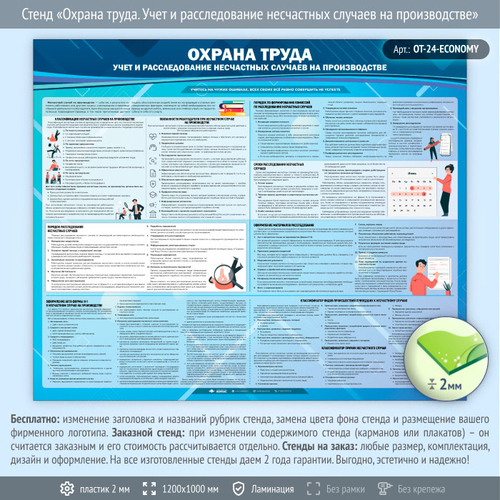 Стенд «Охрана труда. Учет и расследование несчастных случаев на производстве» (OT-24-ECONOMY) в Магнитогорске купить