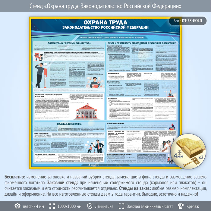Стенд «Охрана труда. Законодательство Российской Федерации» (OT-28-GOLD) в Магнитогорске купить