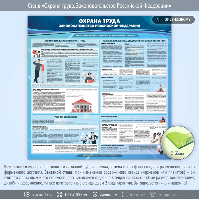 Стенд «Охрана труда. Законодательство Российской Федерации» (OT-28-ECONOMY) в Магнитогорске купить