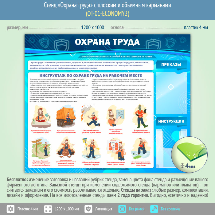 Стенд «Охрана труда» с плоским и объемным карманами (OT-01-ECONOMY2) в Магнитогорске купить
