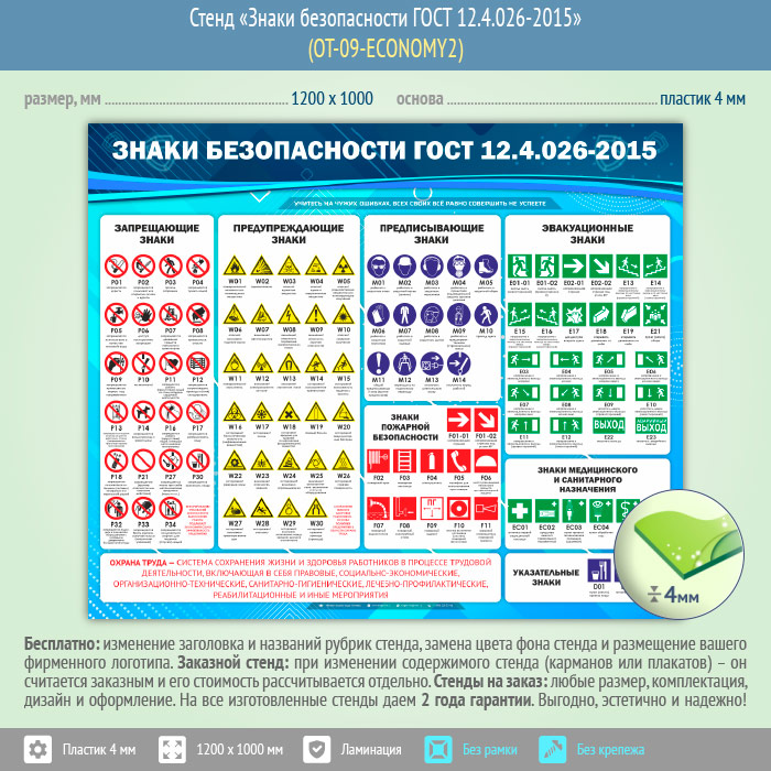 Стенд «Знаки безопасности ГОСТ 12.4.026-2015» (OT-09-ECONOMY2) в Магнитогорске купить