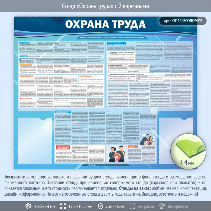 Стенд «Охрана труда» с 2 карманами (OT-11-ECONOMY2) в Магнитогорске купить