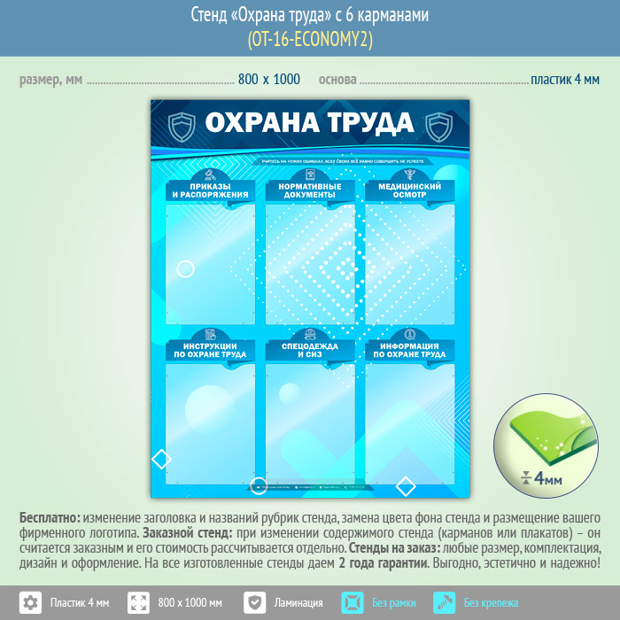 Стенд «Охрана труда» с 6 карманами (OT-16-ECONOMY2) в Магнитогорске купить