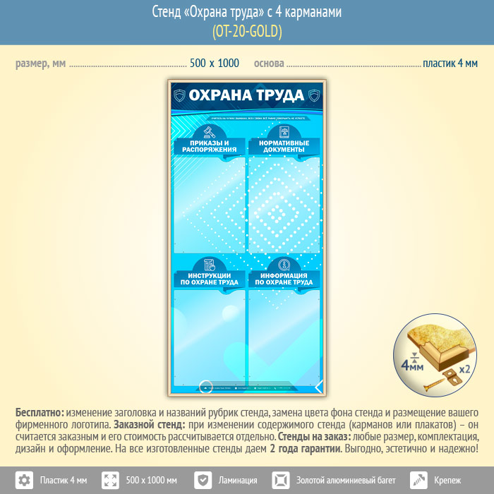 Стенд «Охрана труда» с 4 карманами (OT-20-GOLD) в Магнитогорске купить