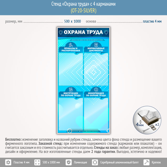 Стенд «Охрана труда» с 4 карманами (OT-20-SILVER) в Магнитогорске купить