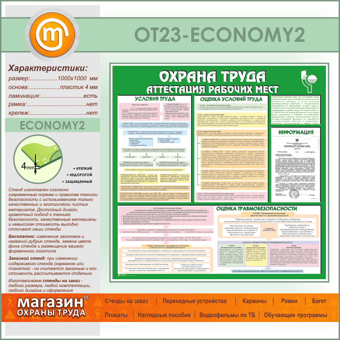 Стенд «Охрана труда. Аттестация рабочих мест» с карманом (OT-23-ECONOMY2) в Магнитогорске купить