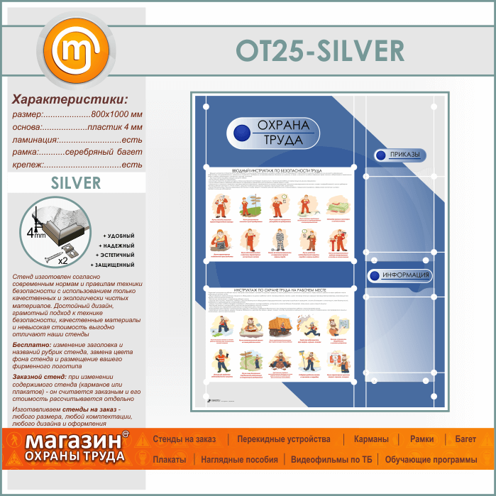 Стенд «Охрана труда» с 2 плоскими карманами (OT-25-SILVER) в Магнитогорске купить