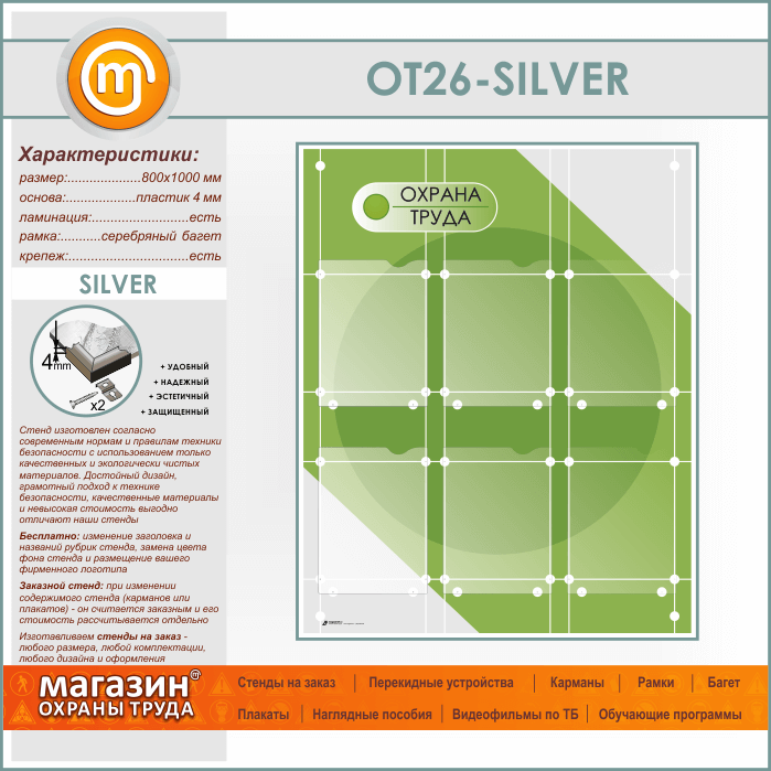 Стенд «Охрана труда» с 6 плоскими карманами (OT-26-SILVER) в Магнитогорске купить