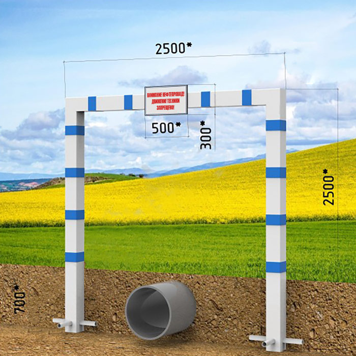 П-образный предупреждающий знак (аншлаг) совместно с предупреждающим знаком «Внимание нефтепровод! Движение техники запрещено!» в Магнитогорске купить