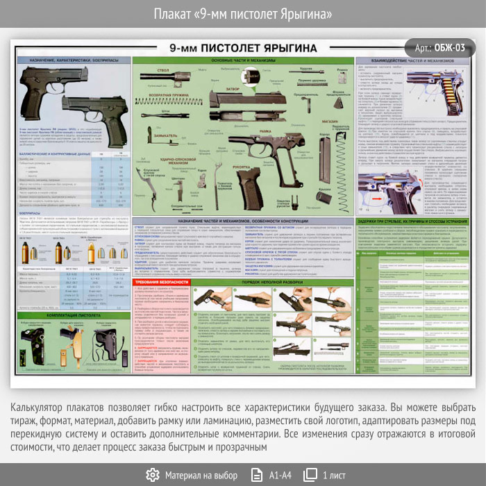 Плакат «9-мм пистолет Ярыгина» (ОБЖ-03, 1 лист) в Магнитогорске купить