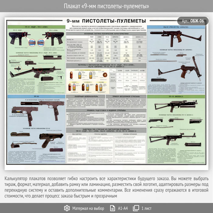 Плакат «9-мм пистолеты-пулеметы» (ОБЖ-06, 1 лист) в Магнитогорске купить