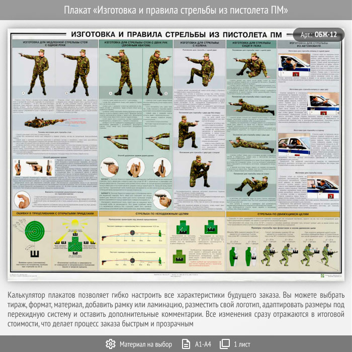 Плакат «Изготовка и правила стрельбы из пистолета ПМ» (ОБЖ-12, 1 лист) в Магнитогорске купить