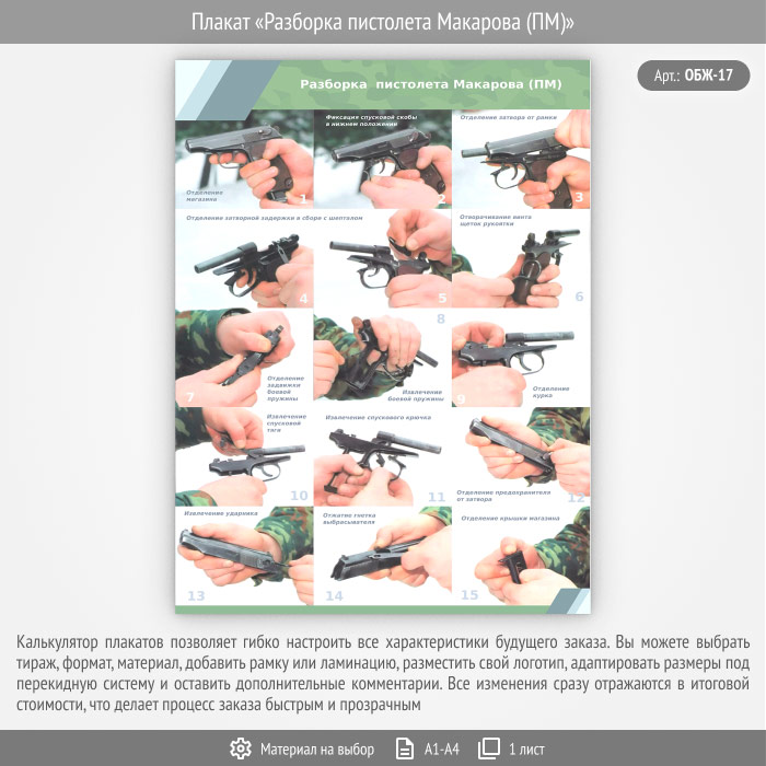 Плакат «Разборка пистолета Макарова (ПМ)» (ОБЖ-17, 1 лист) в Магнитогорске купить