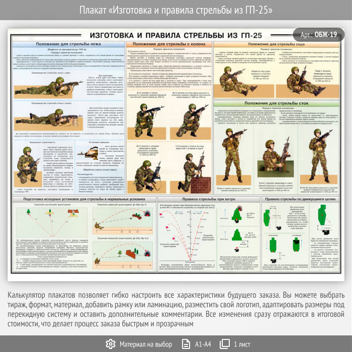 Плакат «Изготовка и правила стрельбы из ГП-25» (ОБЖ-19, 1 лист) в Магнитогорске купить