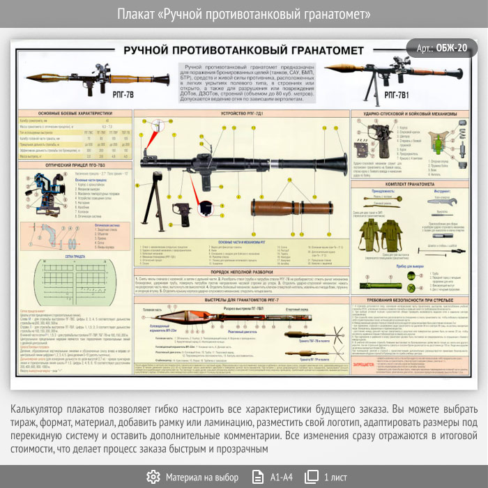 Плакат «Ручной противотанковый гранатомет» (ОБЖ-20, 1 лист) в Магнитогорске купить