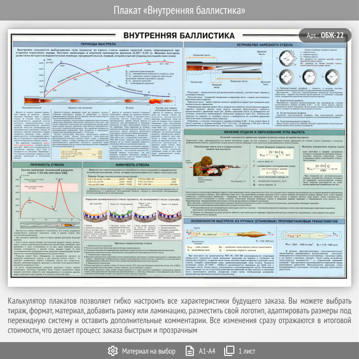 Плакат «Внутренняя баллистика» (ОБЖ-22, 1 лист) в Магнитогорске купить