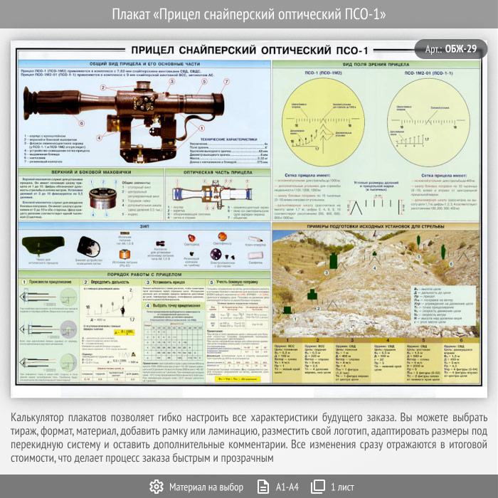 Плакат «Прицел снайперский оптический ПСО-1» (ОБЖ-29, 1 лист) в Магнитогорске купить