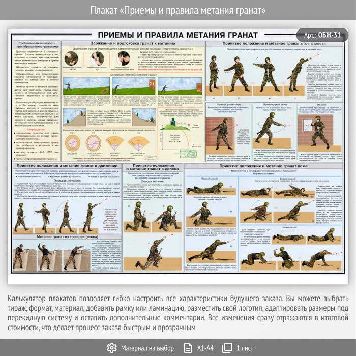 Плакат «Приемы и правила метания гранат» (ОБЖ-31, 1 лист) в Магнитогорске купить