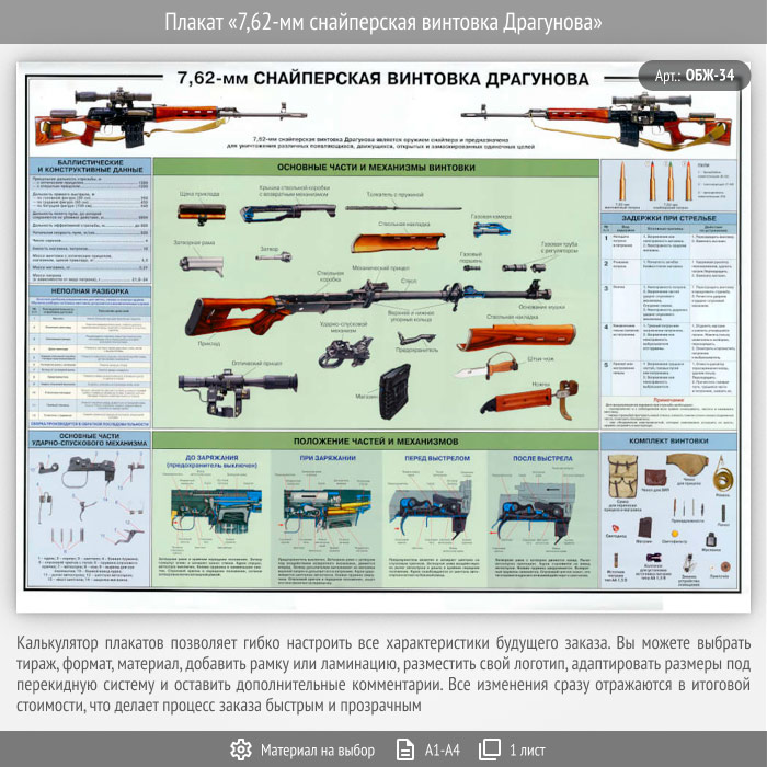 Плакат «7,62-мм снайперская винтовка Драгунова» (ОБЖ-34, 1 лист) в Магнитогорске купить