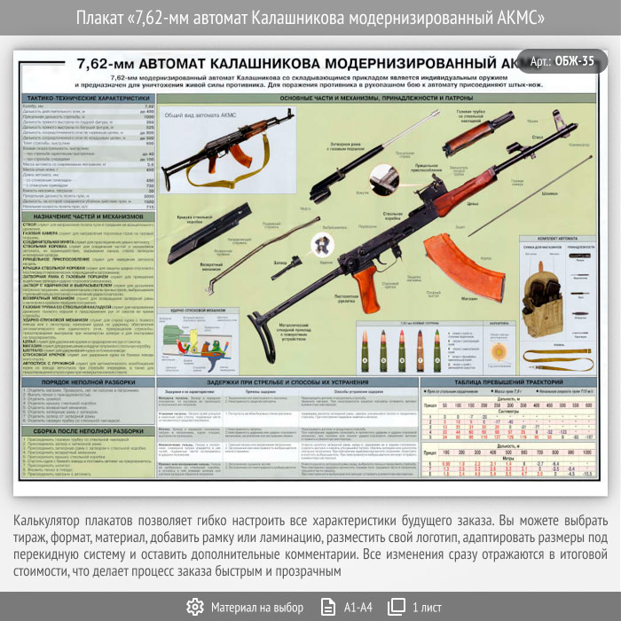 Плакат «7,62-мм автомат Калашникова модернизированный АКМС» (ОБЖ-35, 1 лист) в Магнитогорске купить