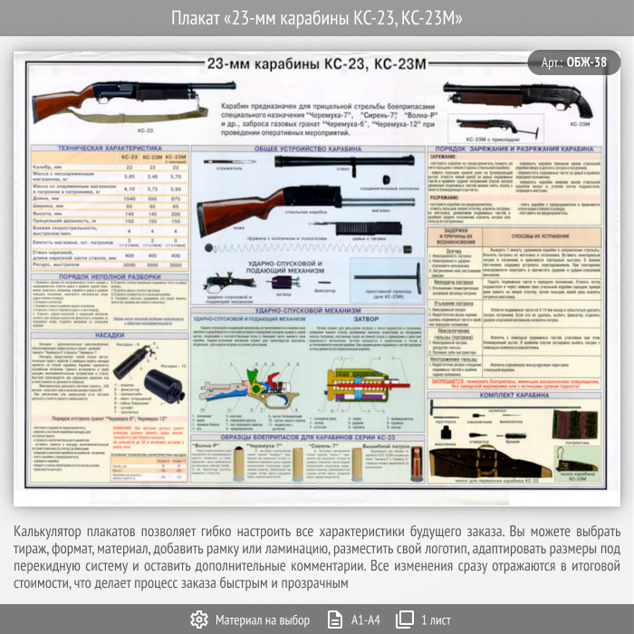 Плакат «23-мм карабины КС-23, КС-23М» (ОБЖ-38, 1 лист) в Магнитогорске купить