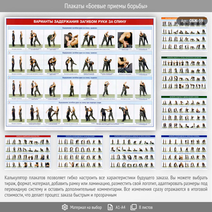 Плакаты «Боевые приемы борьбы» (ОБЖ-39, 8 листа) в Магнитогорске купить
