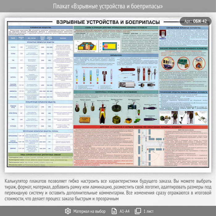 Плакат «Взрывные устройства и боеприпасы» (ОБЖ-42, 1 лист) в Магнитогорске купить