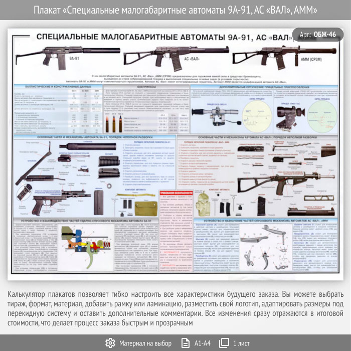 Плакат «Специальные малогабаритные автоматы 9А-91, АС «ВАЛ», АММ» (ОБЖ-46, 1 лист) в Магнитогорске купить