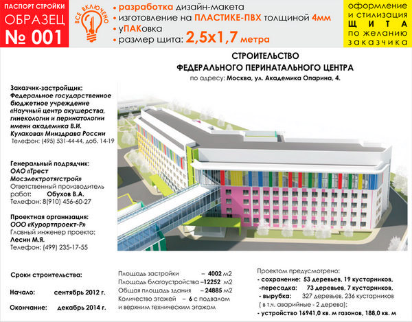 Паспорт стройки, образец № 1 (пластик 4 мм, 2500х1700 cм) в Магнитогорске купить