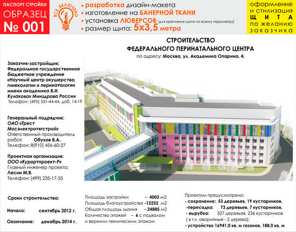 Паспорт стройки, образец № 1 (баннерная ткань, 5000х3500 cм) в Магнитогорске купить