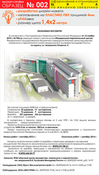 Паспорт стройки, образец № 2 (пластик 4 мм, 1400х2000 cм) в Магнитогорске купить