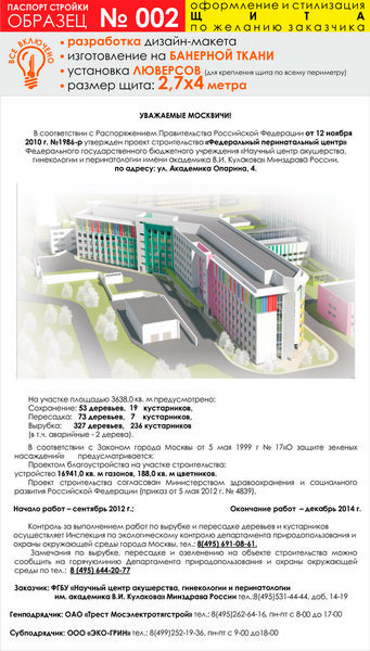Паспорт стройки, образец № 2 (баннерная ткань, 2700х4000 см) в Магнитогорске купить