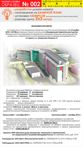 Паспорт стройки, образец № 2 (баннерная ткань, 2000х3000 cм) в Магнитогорске купить