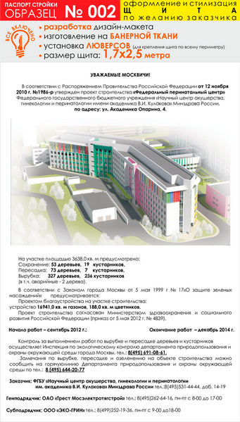 Паспорт стройки, образец № 2 (баннерная ткань, 1700х2500 см) в Магнитогорске купить
