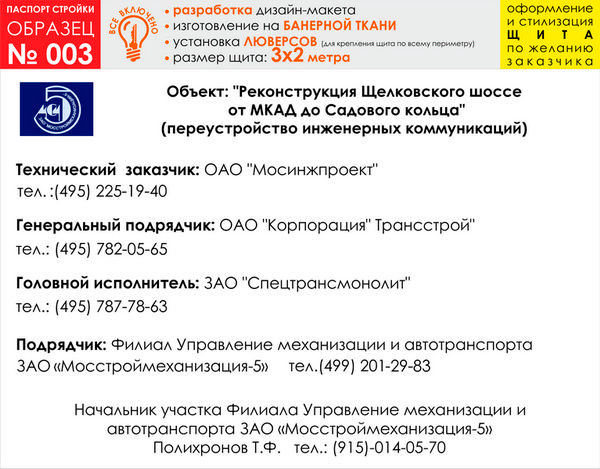 Паспорт стройки, образец № 3 (баннерная ткань, 3000х2000 cм) в Магнитогорске купить