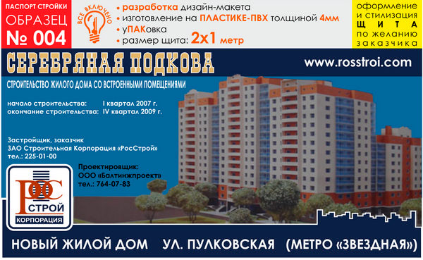 Паспорт стройки, образец № 4 (пластик 4 мм, 2000х1000 cм) в Магнитогорске купить