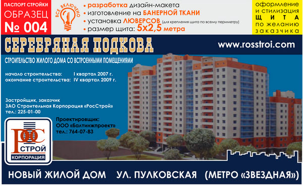 Паспорт стройки, образец № 4 (баннерная ткань, 5000х2500 cм) в Магнитогорске купить