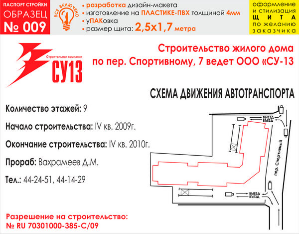 Паспорт стройки, образец № 9 (пластик 4 мм, 2500х1700 cм) в Магнитогорске купить