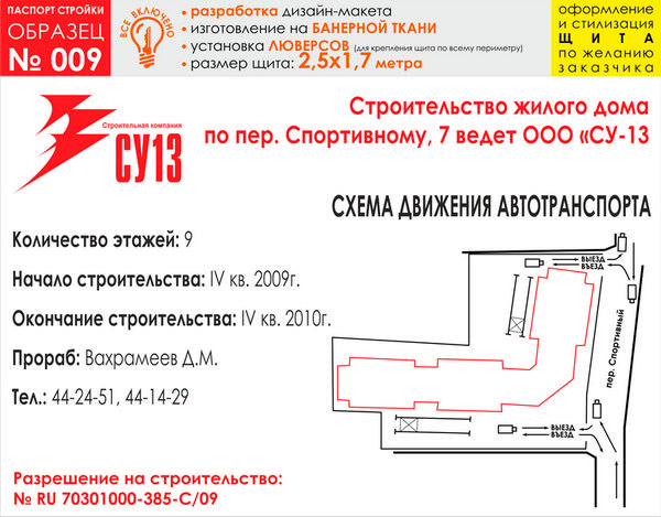Паспорт стройки, образец № 9 (баннерная ткань, 2500х1700 cм) в Магнитогорске купить