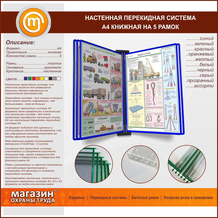 Настенная перекидная система А4 на 5 рамок книжная в Магнитогорске купить