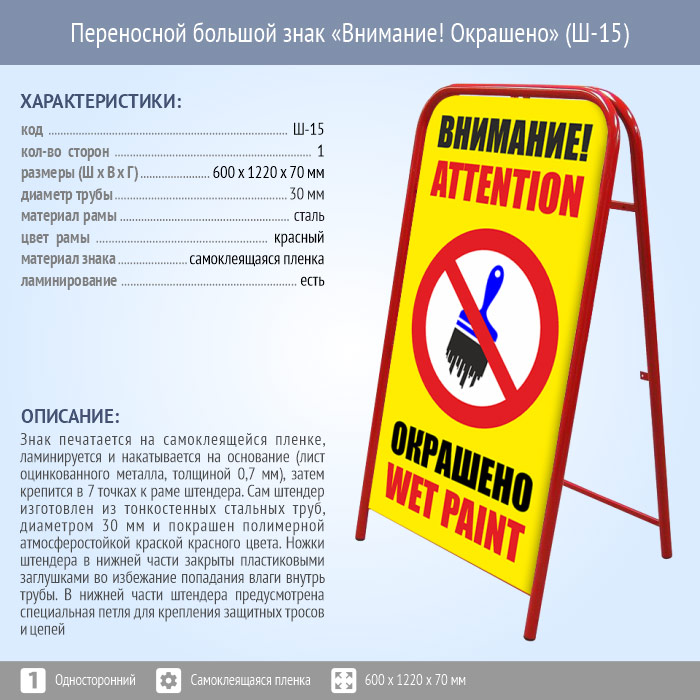 Переносной знак «Внимание! Окрашено» (Ш-15)
