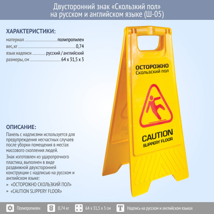 Знак «Скользкий пол» на русском и английском языке (Ш-05) в Магнитогорске купить