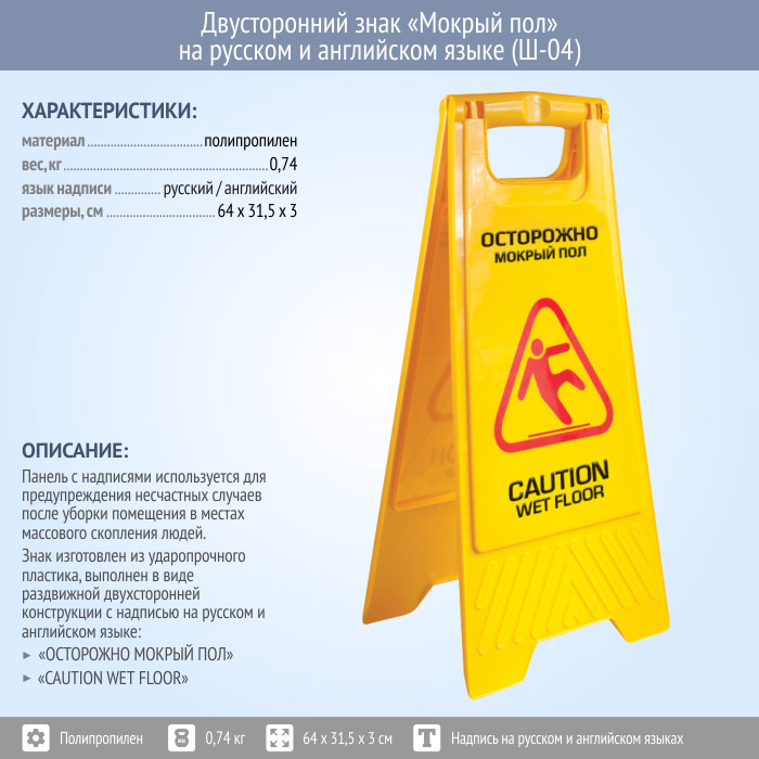 Знак «Мокрый пол» на русском и английском языке (Ш-04) в Магнитогорске купить