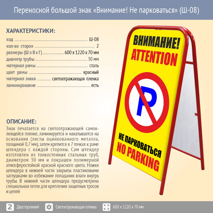 Переносной большой знак «Внимание! Не парковаться» (Ш-08, двусторонний, светоотражающая пленка) в Магнитогорске купить