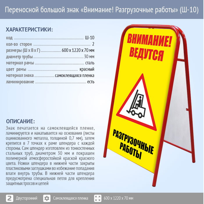 Переносной большой знак «Внимание! Разгрузочные работы» (Ш-10, двусторонний, самоклеящаяся пленка) в Магнитогорске купить