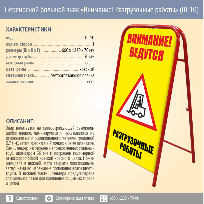 Переносной большой знак «Внимание! Разгрузочные работы» (Ш-10, односторонний, светоотражающая пленка) в Магнитогорске купить