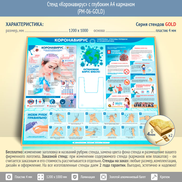 Стенд «Коронавирус» с глубоким А4 карманом (PM-06-GOLD) в Магнитогорске купить